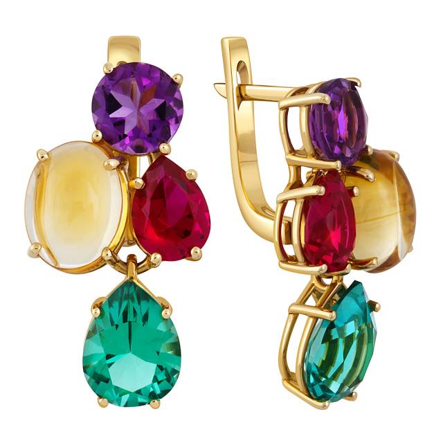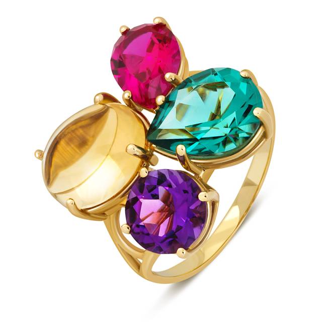 Кольцо из жёлтого золота с полудрагоценными камнями (043425)