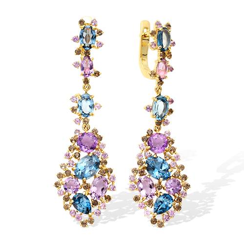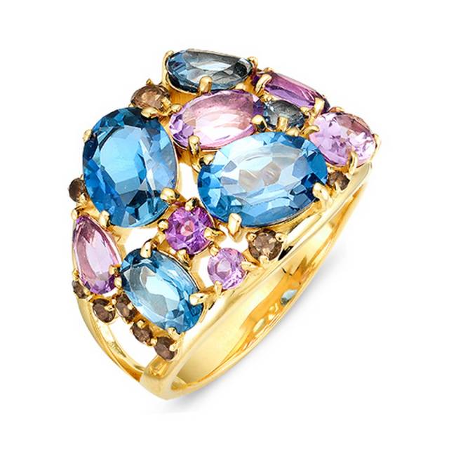 Кольцо из жёлтого золота с топазами, аметистами и раухтопазами (041236)