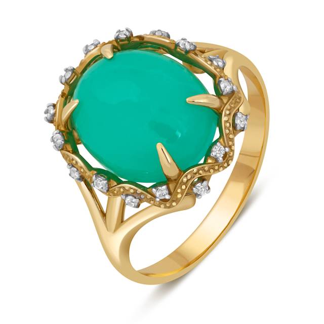 Кольцо из жёлтого золота с зелёным опалом и бесцветными сапфирами (043433)