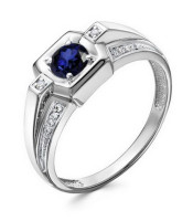 Кольцо мужское из красного золота с бриллиантами и сапфиром (061314)