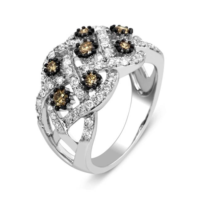 Кольцо с белыми и коричневыми бриллиантами (003005)