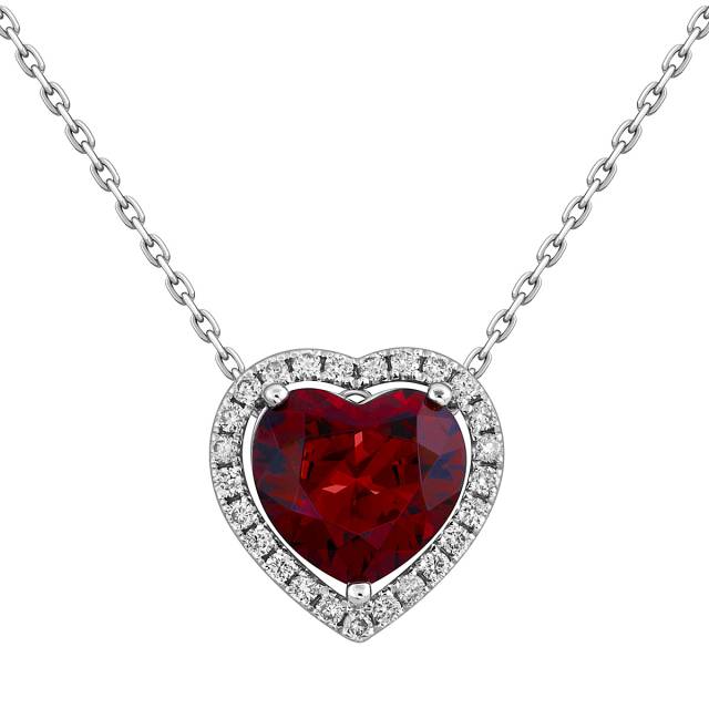 Колье из белого золота с бриллиантами и гранатом Сердце (052523)