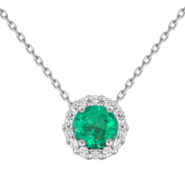 Колье из белого золота с бриллиантами и изумрудом (051699)