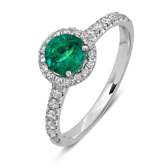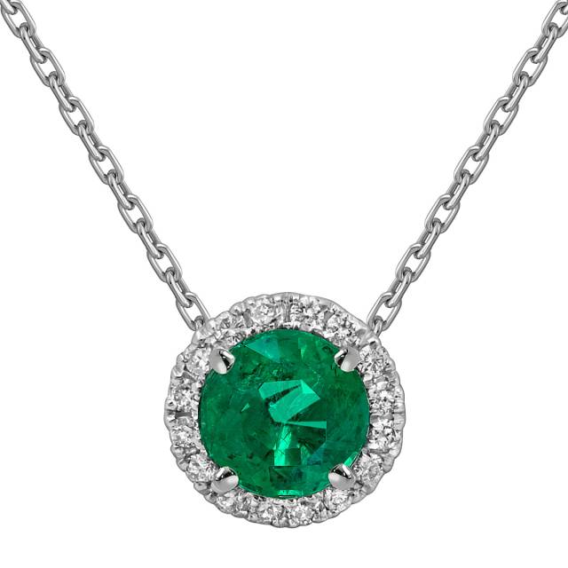 Колье из белого золота с бриллиантами и изумрудом (052540)