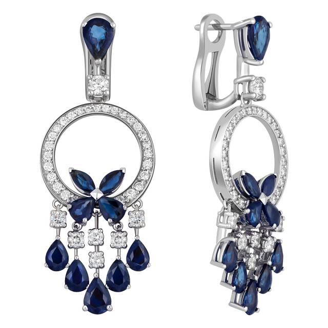 Колье из белого золота с бриллиантами и сапфирами (040901)