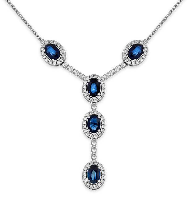 Колье из белого золота с бриллиантами и сапфирами (050779)