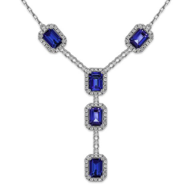 Колье из белого золота с бриллиантами и сапфиром (055126)