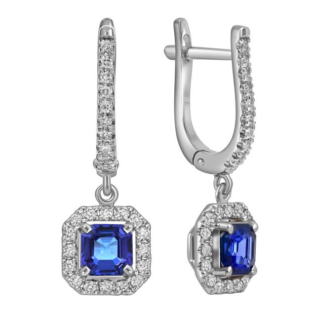 Серьги из белого золота с бриллиантами и сапфирами (060314)