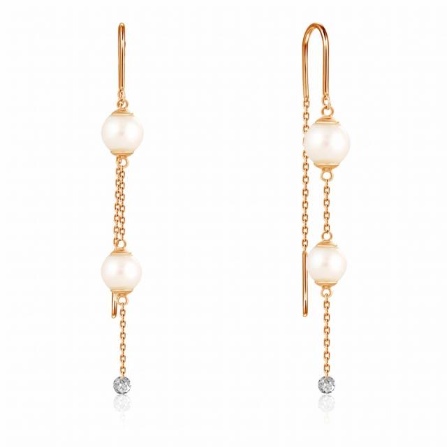 Серьги из красного золота с бриллиантами и жемчугом Акойя (047686)