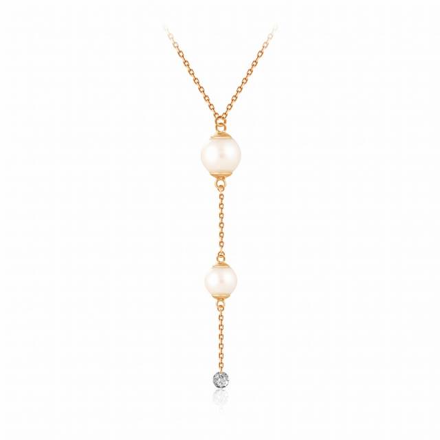 Колье из красного золота с бриллиантом и жемчугом Акойя (047748)