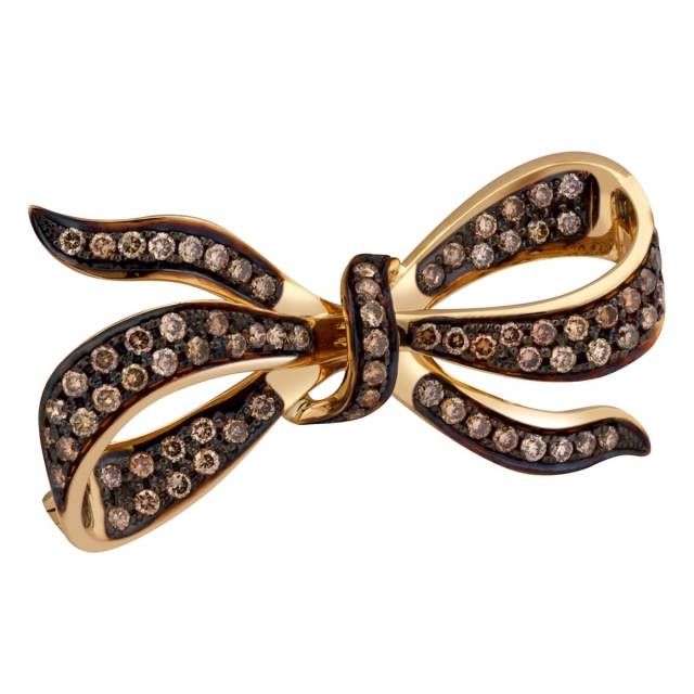 Брошь из жёлтого золота с коричневыми бриллиантами (027331)