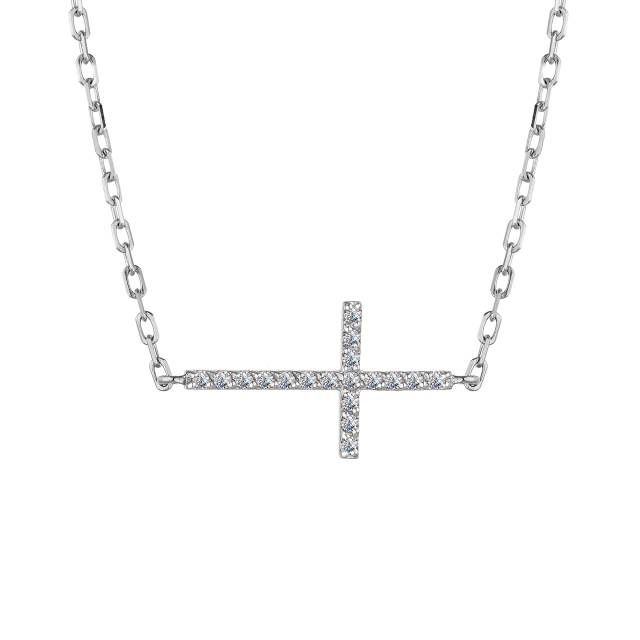 Колье крест из белого золота с бриллиантами (046430)