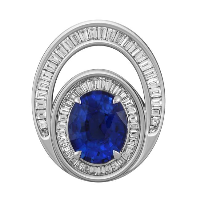 Кулон из белого золота 750 пробы с бриллиантами и сапфиром (046830)