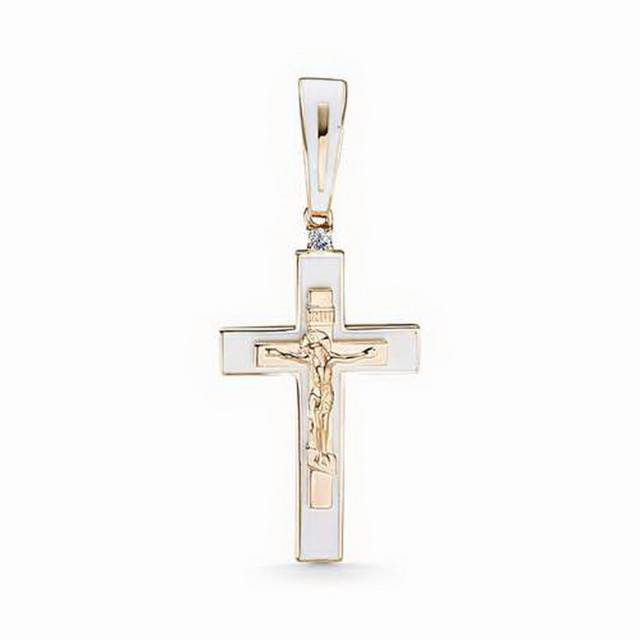 Подвеска крест из комбинированного золота с бриллиантом (031405)