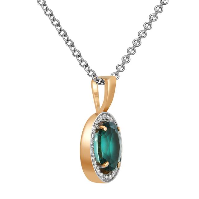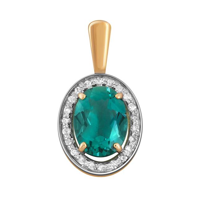 Кулон из красного золота с бриллиантами и синтетической вставкой (045571)