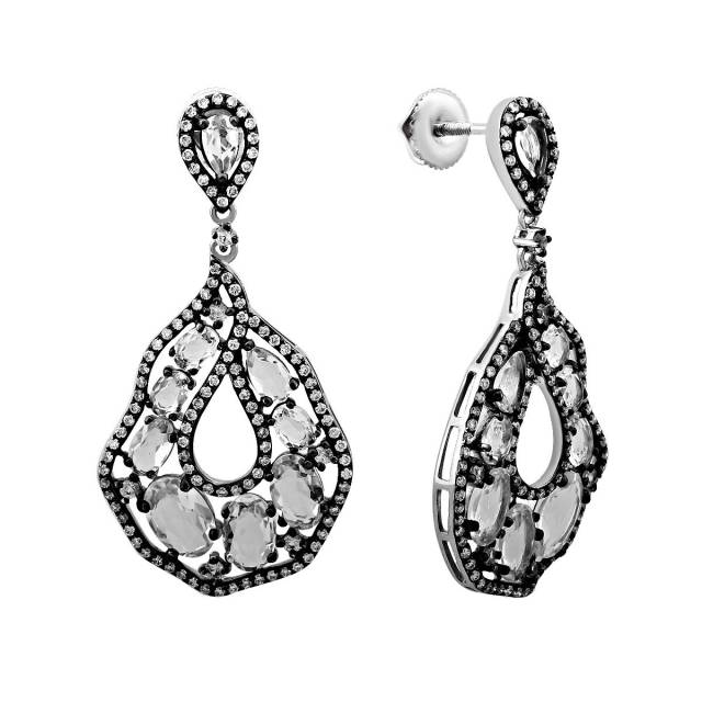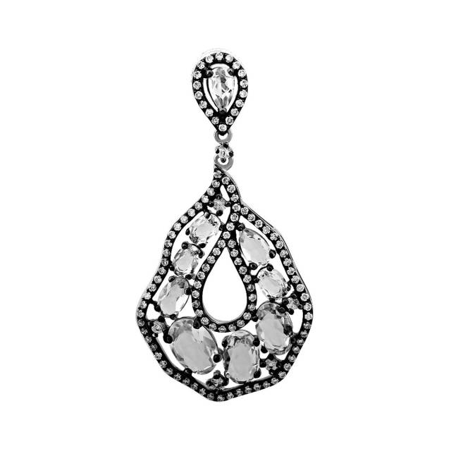 Кулон из белого золота с бриллиантами, бесцветными сапфирами и топазами (003990)