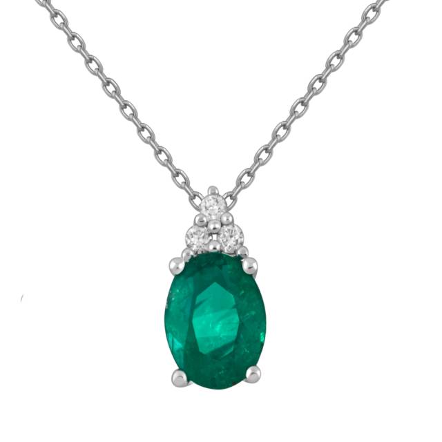 Кулон из белого золота с бриллиантами и изумрудом (054513)