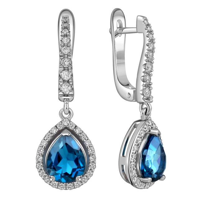 Кулон из белого золота с бриллиантами и лондон топазом (060159)