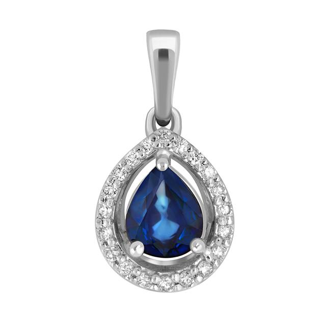 Кулон из белого золота с бриллиантами и сапфиром (046119)