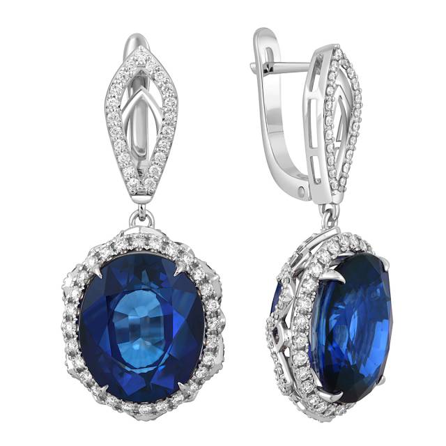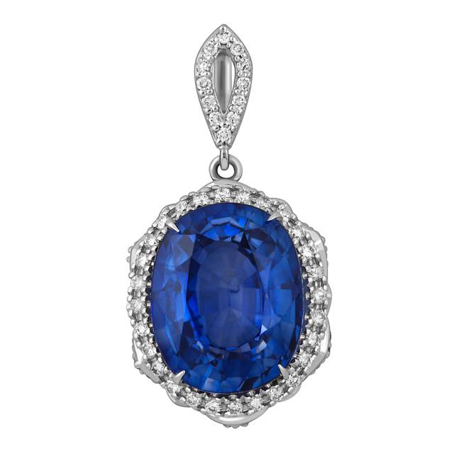 Кулон из белого золота с бриллиантами и сапфиром (049236)