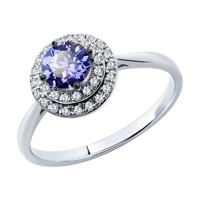 Кулон из белого золота с бриллиантами и танзанитом (043932)