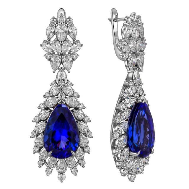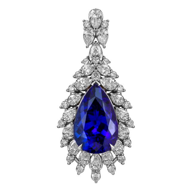 Кулон из белого золота с бриллиантами и танзанитом (054132)