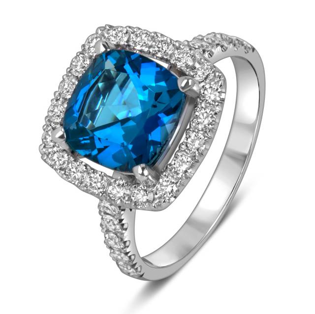 Кулон из белого золота с бриллиантами и топазом (060150)