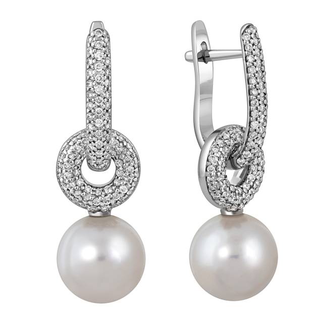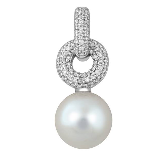 Кулон из белого золота с бриллиантами и жемчужиной (049379)