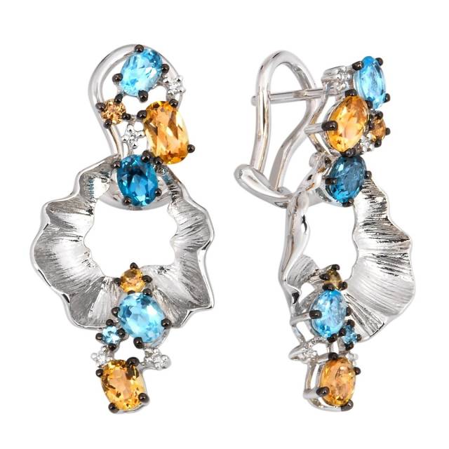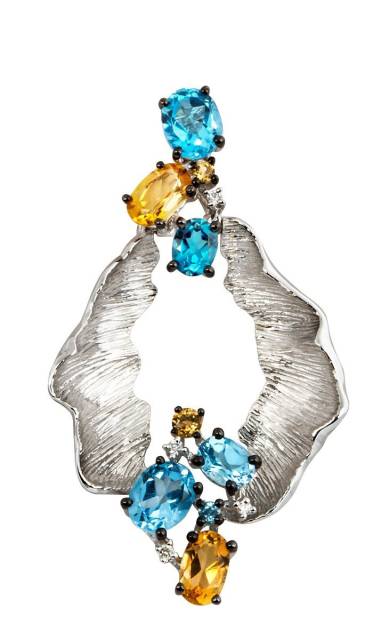 Кулон из белого золота с бриллиантами, тазами и цитринами (011066)