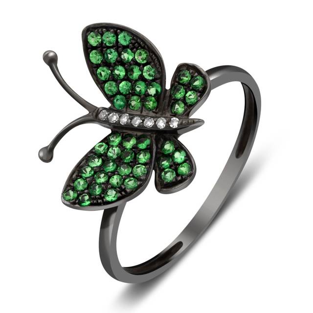 Кулон из чернёного золота с бриллиантами и цаворитами "Бабочка" (001231)