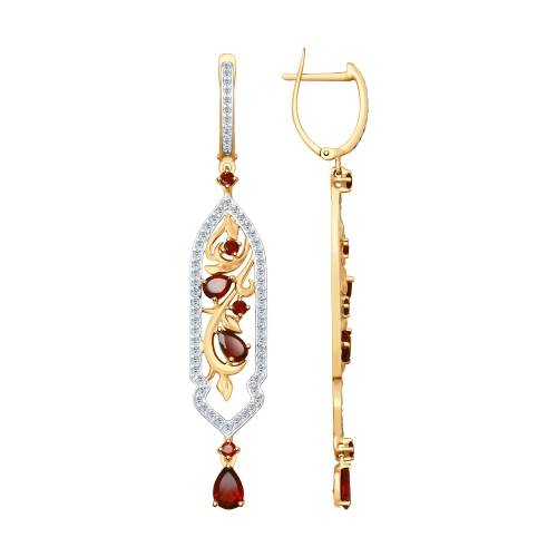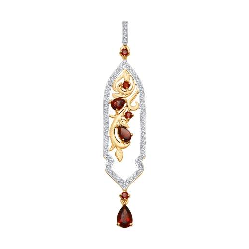 Кулон из комбинированного золота с гранатами и фианитами (038377)