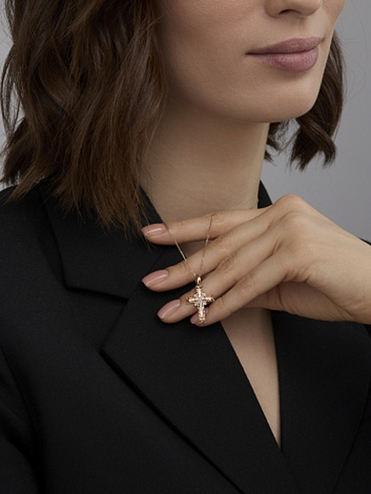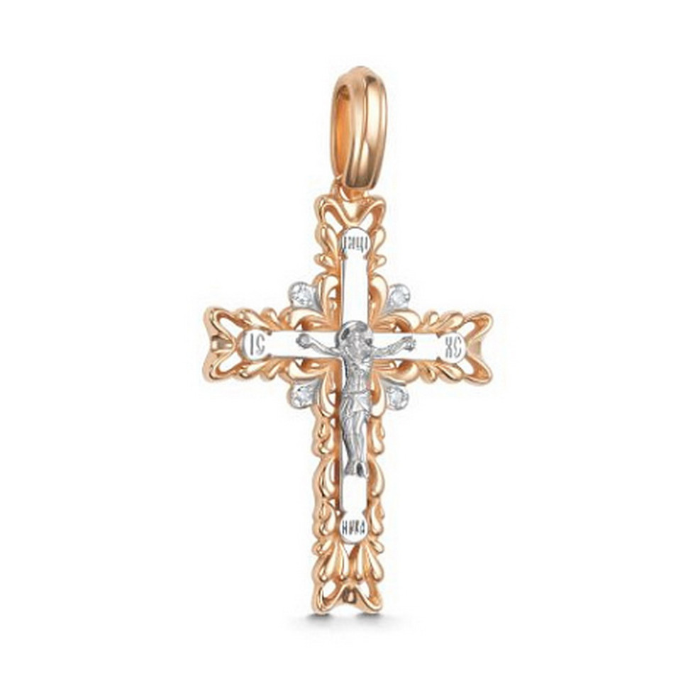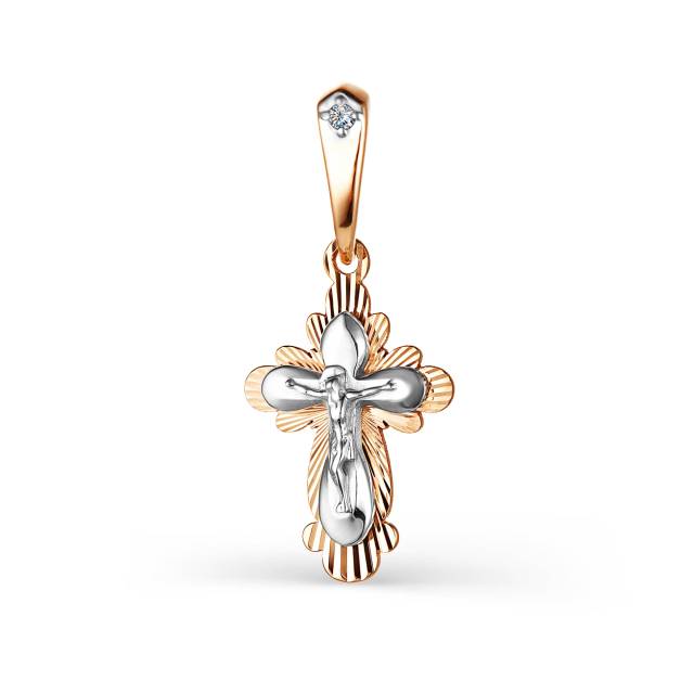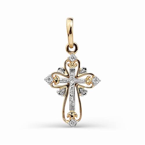Подвеска крест из комбинированного золота с бриллиантами (031403)