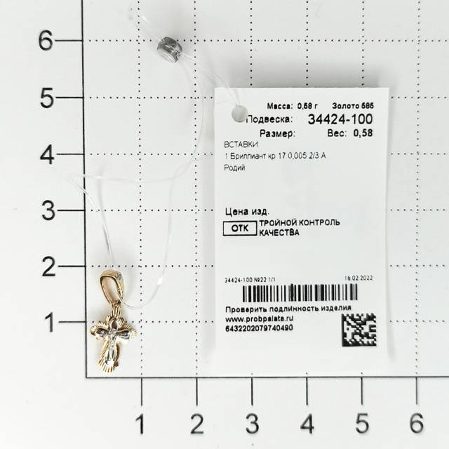 Кулон крест из комбинированного золота с бриллиантом (050262)