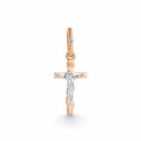 Кулон крест из комбинированного золота с бриллиантом (039523)