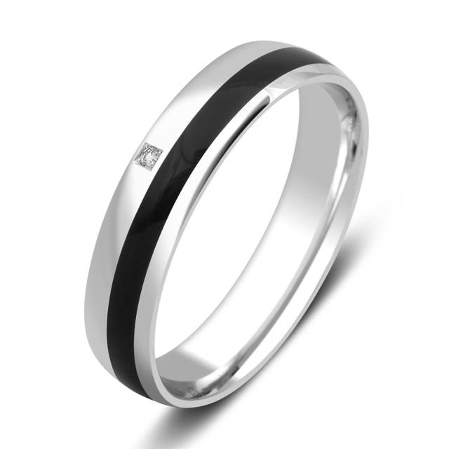 Обручальное кольцо из белого золота с бриллиантом и керамикой (026003)