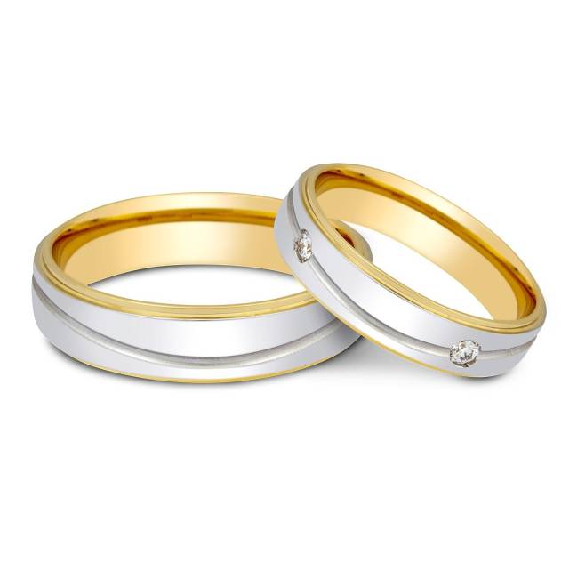 Обручальное кольцо из комбинированного золота с бриллиантами Tiamo (002109)