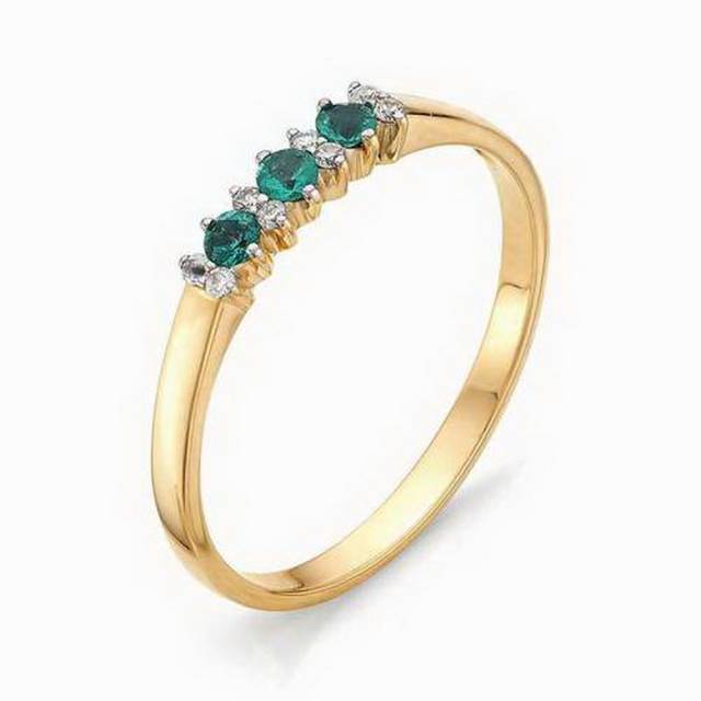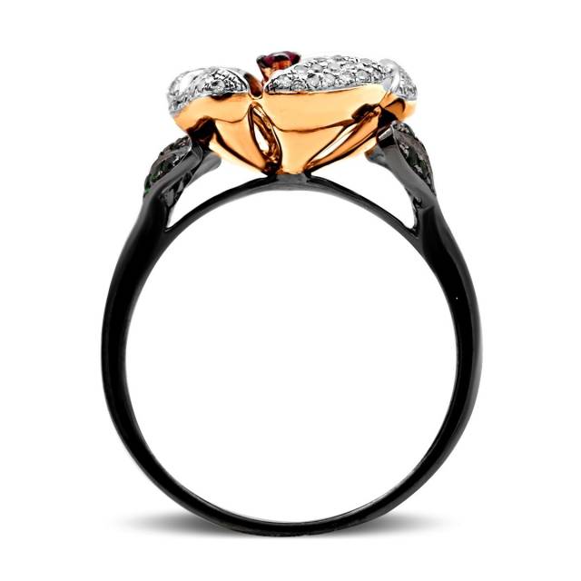 Кольцо из красного золота с бриллиантами и изумрудами (031266)