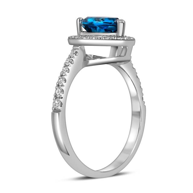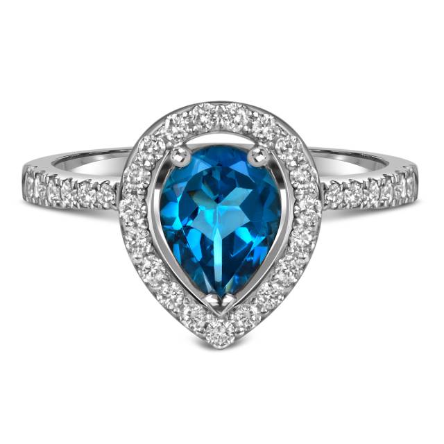 Кольцо из белого золота с бриллиантами и лондон топазом (060154)