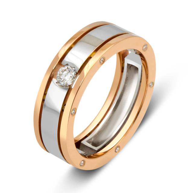 Обручальное кольцо из комбинированного золота с бриллиантами (027595)