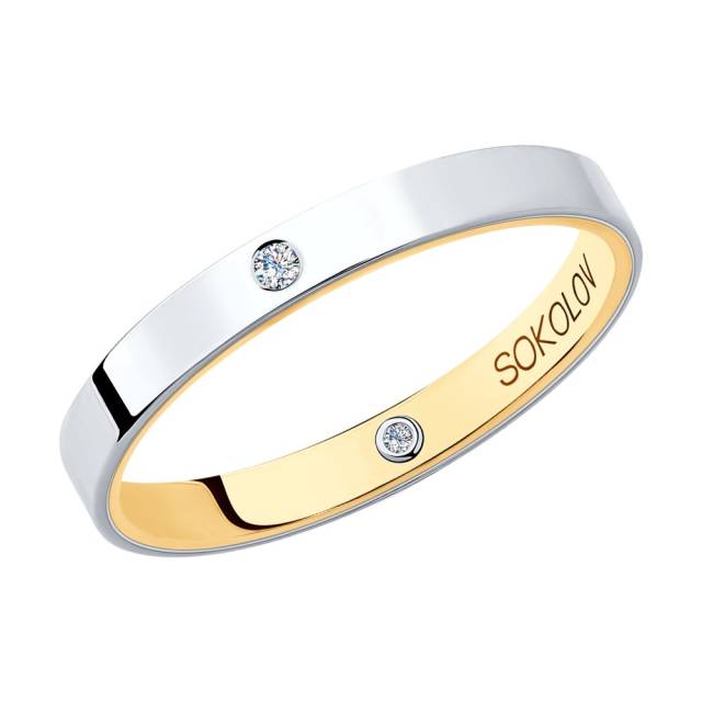 Обручальное кольцо из комбинированного золота с бриллиантами (041009)