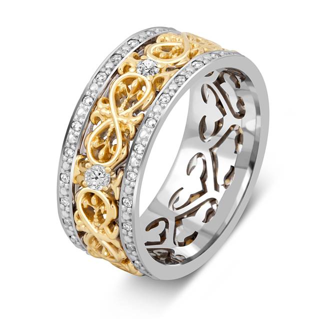 Обручальное кольцо из комбинированного золота с бриллиантами "Бесконечность" (049279)