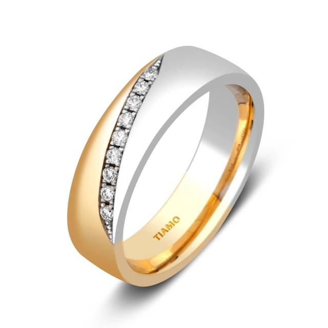 Обручальное кольцо из комбинированного золота с бриллиантами TIAMO (000080)
