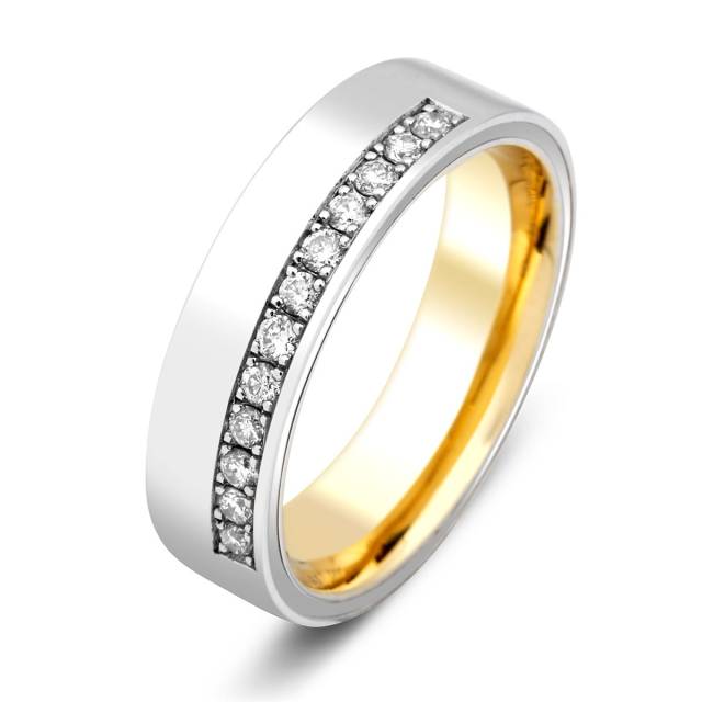 Обручальное кольцо из комбинированного золота с бриллиантами TIAMO (002141)
