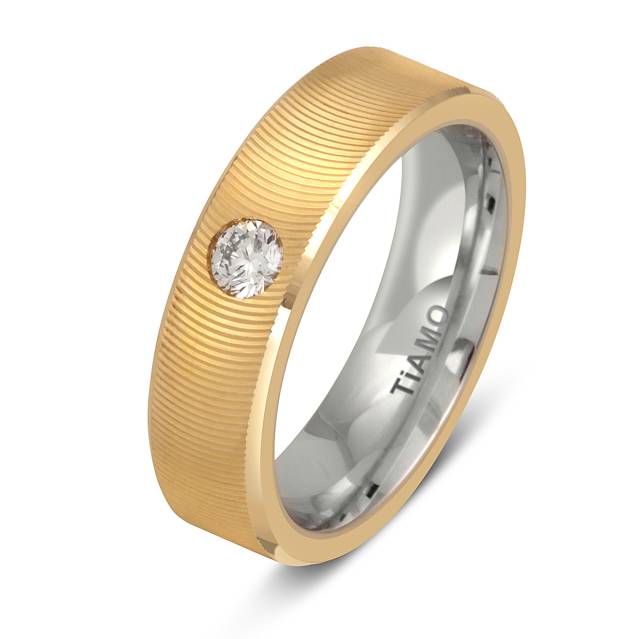 Обручальное кольцо из комбинированного золота с бриллиантом TIAMO (052754)