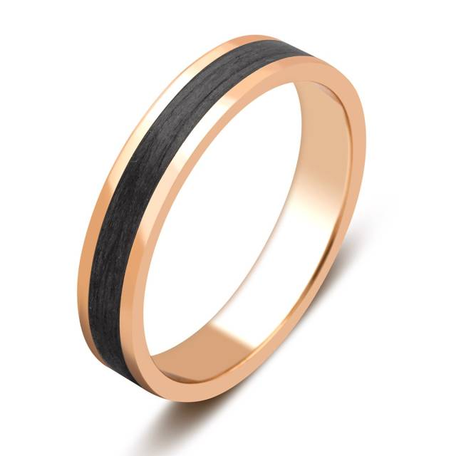 Обручальное кольцо из красного золота с бриллиантом и карбоном (028252)