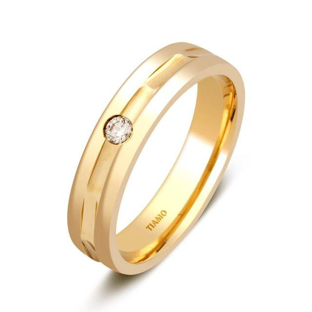 Обручальное кольцо из жёлтого золота с бриллиантом Tiamo (045617)