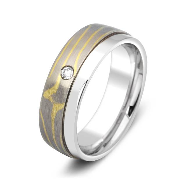 Обручальное кольцо с бриллиантом Мокуме Гане Peter Heim (009939)