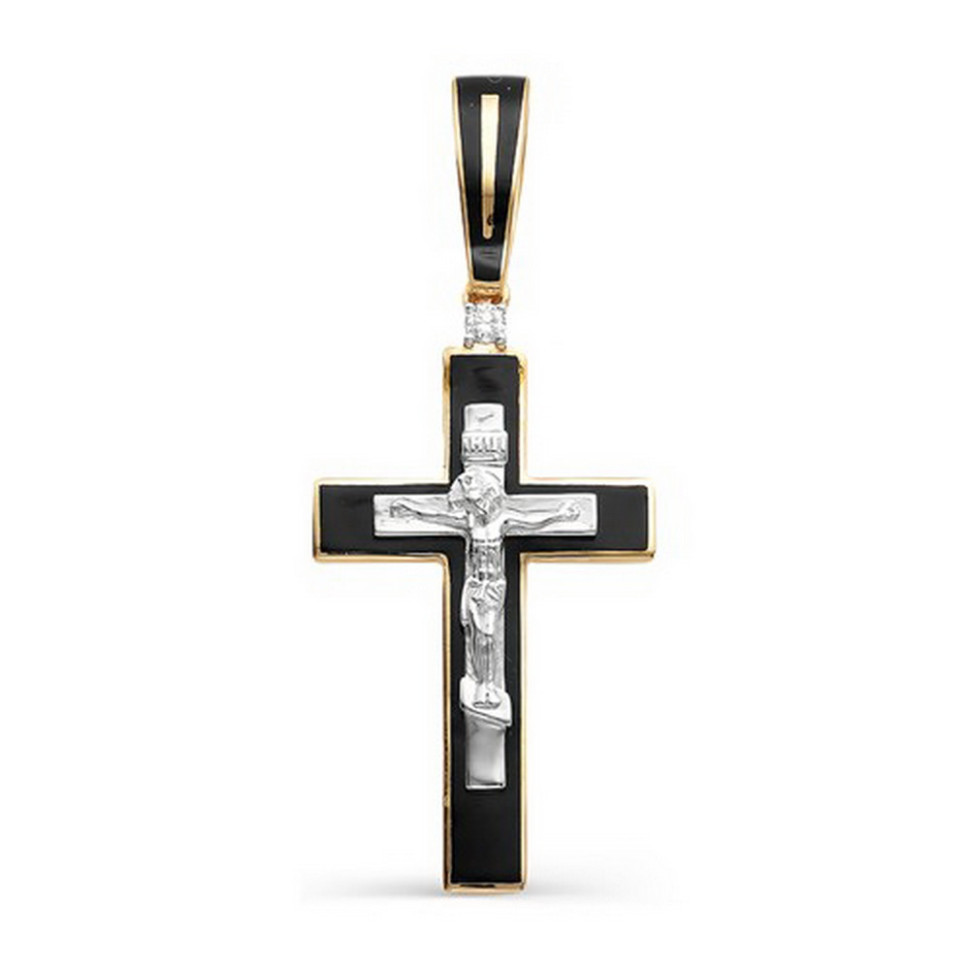 Кулон крест из комбинированного золота с бриллиантами и эмалью (025670)
