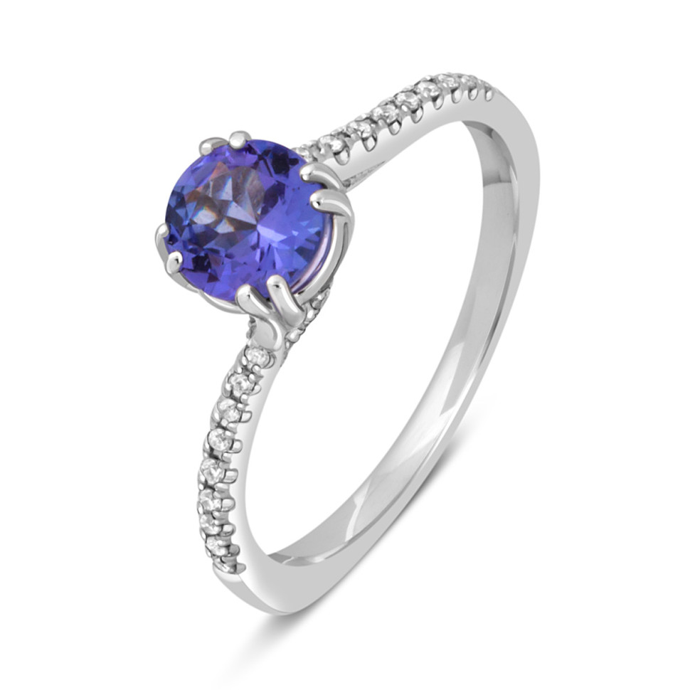 Кольцо из белого золота с бриллиантами и танзанитом (048101)