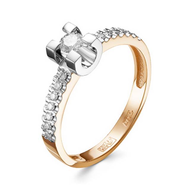 Помолвочное кольцо из комбинированного золота с бриллиантами (043052)